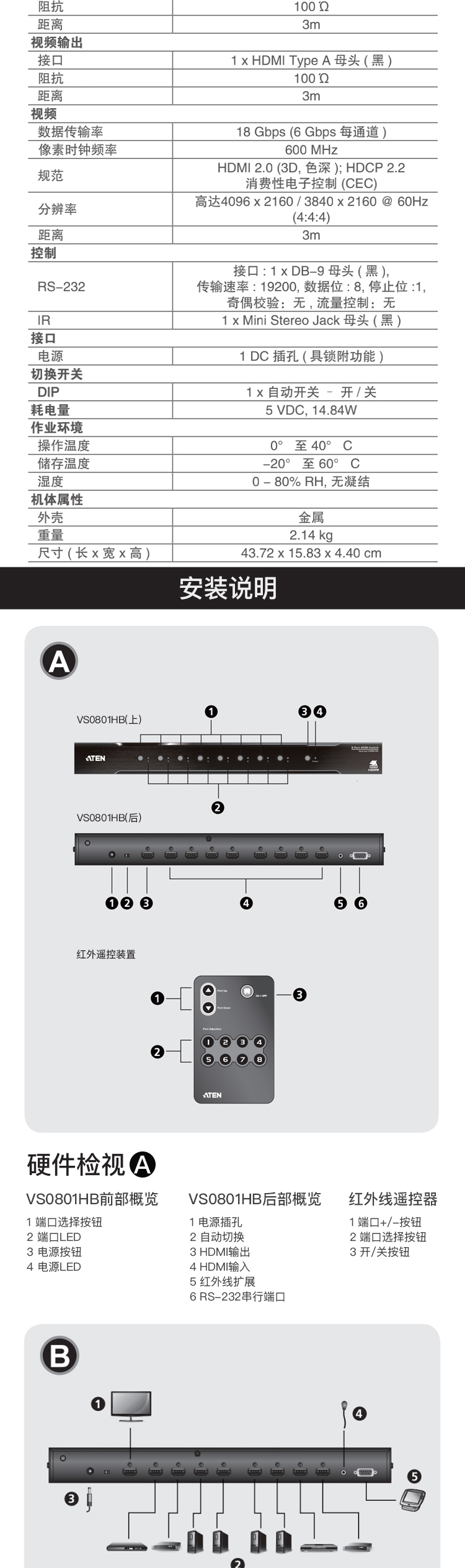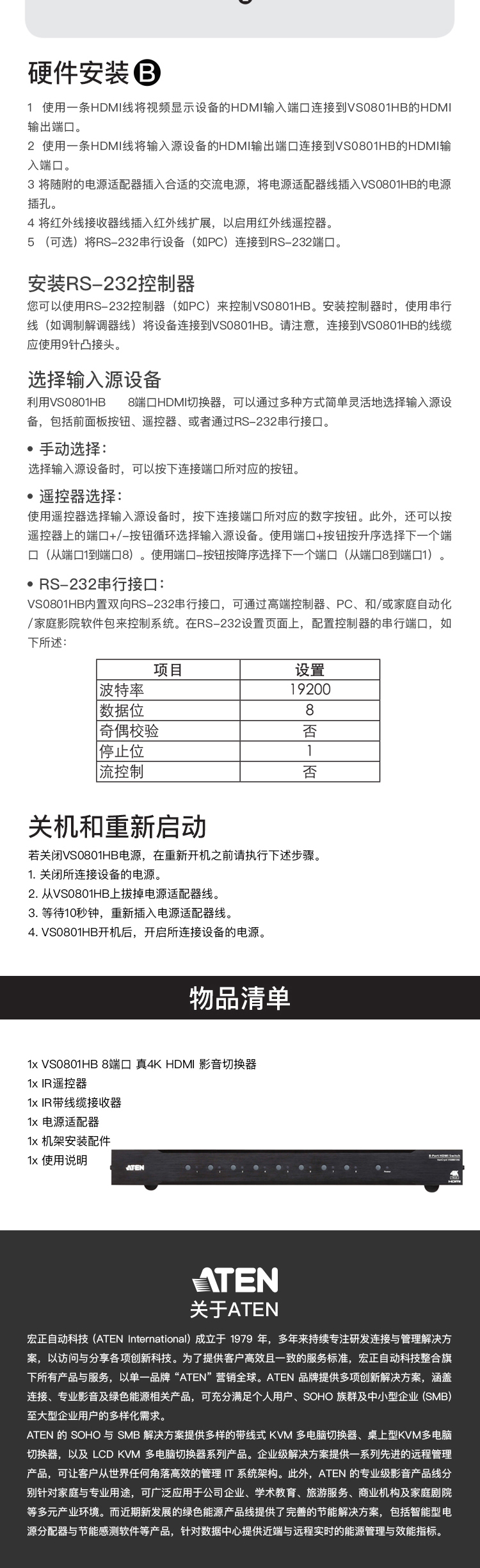 ATEN 宏正 四川成都 KVM分銷服務商 VS0801HB 8端口 真4K HDMI 影音切換器 VS0801HB-AT-Z