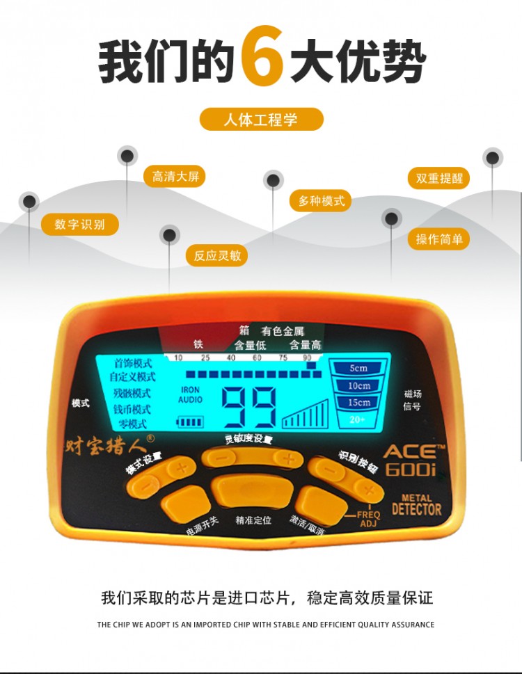 財寶獵人ACE600i金屬探測器高精度尋寶儀地下金銀探測