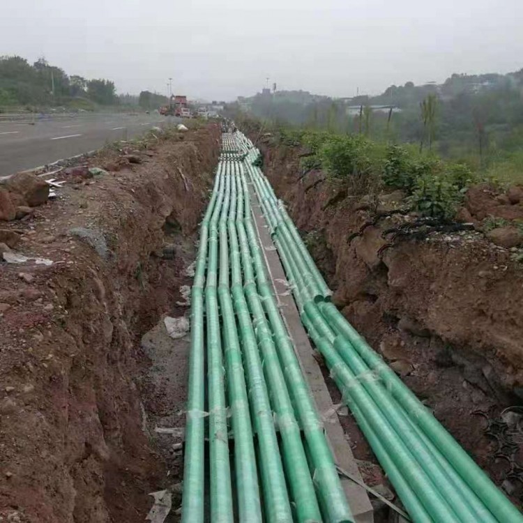 玻璃鋼電纜管,是一種新型的復(fù)合材料管,它以樹脂為基體和玻璃纖維為增強(qiáng)材料復(fù)合而成, 與不飽和樹脂粘結(jié)成型并能與現(xiàn)代電纜工程建設(shè)相配套的優(yōu)質(zhì)電纜保護(hù)用導(dǎo)管產(chǎn)品。抗壓力強(qiáng)、重量輕、內(nèi)壁光滑,摩擦系數(shù)小,在穿用電纜時(shí)輕松,不損傷電纜。搬、運(yùn)要比金屬鋼管和水泥管輕松、方便。施工安裝簡(jiǎn)便,既省事又省力。耐腐蝕性能強(qiáng)、絕緣、非磁性、耐酸、耐堿、阻燃型、抗靜電。彎曲彈性模量好,完全解決了金屬鋼管易腐爛、無扭曲彈性的特點(diǎn),同時(shí)也克服了塑管易老化、抗沖擊力差的不足。耐水性能好,可在潮濕或水中長(zhǎng)期使用不變質(zhì)。由于玻璃鋼的特定性能,該玻璃鋼管使施工方便,在搶修特定工程時(shí),效率尤為突出,是電力電纜工程、通信電纜市政工程及道路地下敷設(shè)電纜為理想的保護(hù)裝置,電纜過河、過橋使用為適宜、輕便。