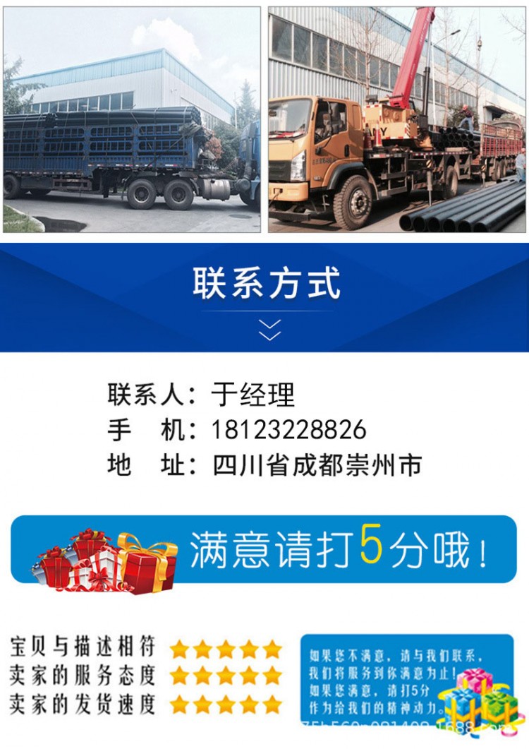 直管長度一般為6m、9m、12m,也可由供需雙方商定,以PE100級為例