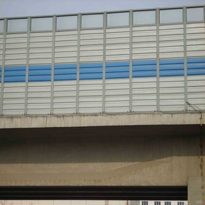 四川隔聲屏障是以吸聲材料為芯材,采用彩鋼夾芯板聲學(xué)構(gòu)件組裝成的吸、隔聲屏障。彩鋼聲屏障吸聲型聲學(xué)構(gòu)件可加工成百頁(yè)窗式、穿孔式、微穿孔式和開(kāi)槽孔式等若干種吸、隔聲型聲學(xué)單元。百葉窗和穿孔的吸聲彩鋼復(fù)合板中、高頻隔聲性能較好,不開(kāi)槽孔的彩鋼復(fù)合板聲學(xué)構(gòu)件對(duì)中、低頻隔聲性能較好。因此可根據(jù)噪聲特點(diǎn)選用不同結(jié)構(gòu)形式的聲屏障。