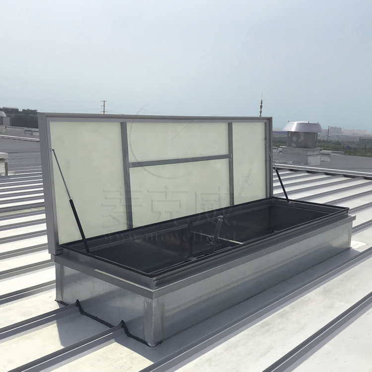 一字型電動(dòng)采光排煙天窗以采光為主,通風(fēng)為輔,分為單體式和連體式。該類天窗因?yàn)榕c屋面平行,風(fēng)阻系數(shù)較小,適用于平時(shí)以采光為主,必要時(shí)才啟的屋面。一字型電動(dòng)采光排煙天窗通過(guò)電動(dòng)啟閉來(lái)控制其開(kāi)啟角度,完全開(kāi)啟角度為90° 時(shí),其通風(fēng)排煙量大。控制方式一般為通用控制方式,可實(shí)現(xiàn)消防聯(lián)動(dòng),并且也可根據(jù)需要由煙感、雨感、風(fēng)感、溫度感應(yīng)等實(shí)現(xiàn)聯(lián)動(dòng)控制。