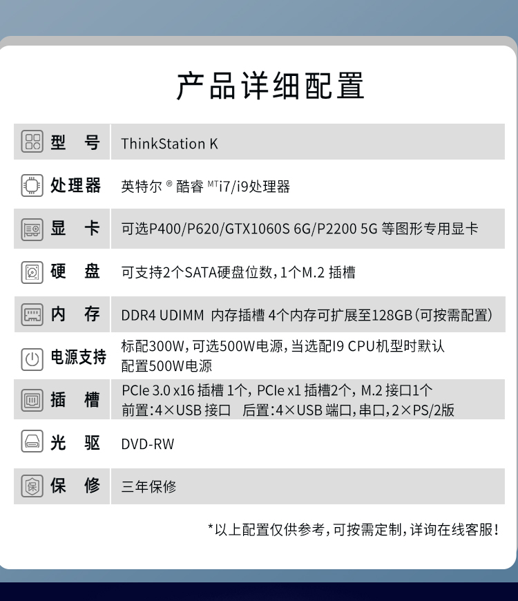 nze(銅) 3106 1.7GHz 8C(核) 11 MB三級(jí)緩存 9.6 GT/s UPI 85W,可支持2顆CPU,標(biāo)配1個(gè)16GB TruDDR4 2666 MHz (1Rx4 1.2V) RDIMM內(nèi)存,支持12個(gè)DDR4內(nèi)存插槽,標(biāo)配支持1個(gè)2.5" 300GB 10K SAS 12Gbps熱插拔硬盤,標(biāo)配8個(gè)2.5"硬盤背板插槽,支持16個(gè)2.5"硬盤背板插槽,標(biāo)配RAID 530-8i PCIe 12Gbps陣列卡(無(wú)緩存,支持8個(gè)硬盤)支持RAID0/1/10/5/50,標(biāo)配2個(gè)主板集成1GbE RJ-45網(wǎng)口和1個(gè)管理網(wǎng)絡(luò)端口,支持6個(gè)PCIe 3.0插槽(含RAID插槽),標(biāo)配 1個(gè)550W白金級(jí)熱插拔電源模塊,支持2個(gè),標(biāo)配半高SATA DVD-RW光驅(qū),支持2個(gè)光驅(qū),前置1個(gè)USB2.0(XClarity管理接口),1個(gè)USB3.0接口,光通路診斷LED報(bào)警燈,工作溫度5 °C - 45 °C(符合ASHRAE Class A4、A3、A2標(biāo)準(zhǔn)),3年7*24*4上門&基礎(chǔ)安裝