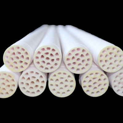 根據(jù)支撐體的不同,陶瓷膜的構(gòu)型可分為平板、管式、多通道三種。陶瓷膜由于耐酸堿、耐高溫和在極端環(huán)境下的化學(xué)穩(wěn)定性,又由于商品化的陶瓷膜孔徑較?。ㄍǔP∮?.2μm),可以成功地實(shí)現(xiàn)分子級(jí)過濾,因此其主要用于對(duì)液態(tài)、氣態(tài)混合物進(jìn)行過濾分離,可以取代傳統(tǒng)的離心、蒸發(fā)、精餾、過濾等分離技術(shù),達(dá)到提高產(chǎn)品質(zhì)量、降低生產(chǎn)成本的目標(biāo),在石油和化學(xué)工業(yè)等苛刻環(huán)境中具有廣泛的應(yīng)用前景