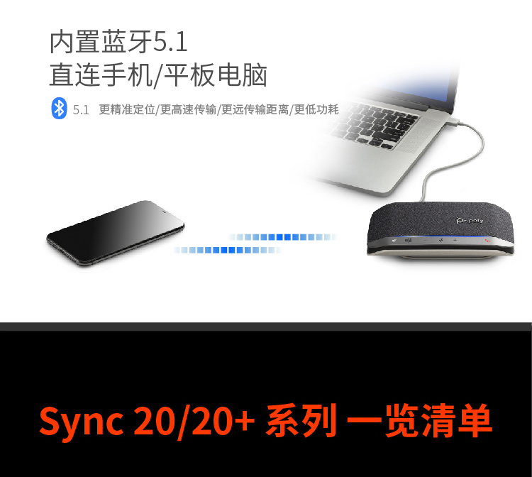 繽特力 PlantronicsPoly Sync20M-C視頻會議全向麥克風(fēng) 無線藍(lán)牙桌面會議揚聲器適合20㎡