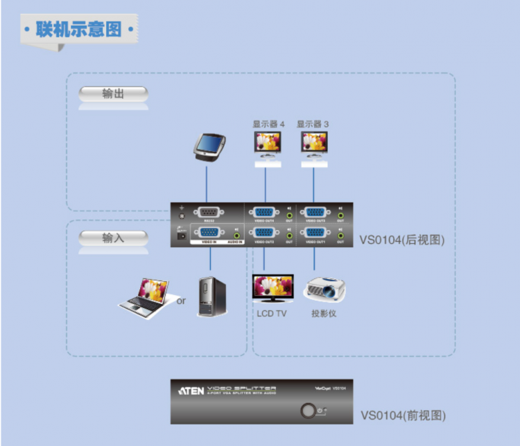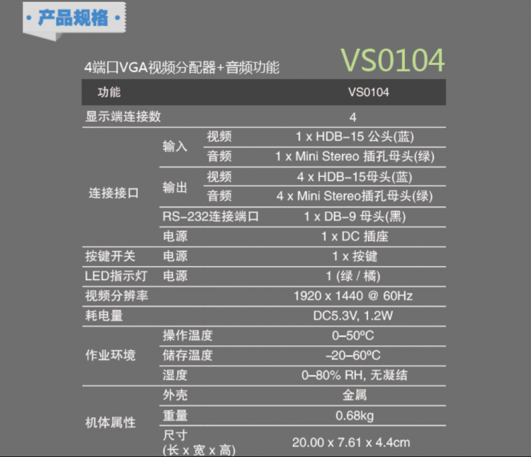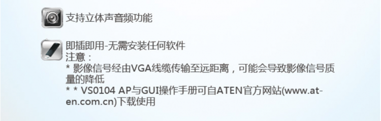 ATEN宏正VS0104 4端口VGA視頻分配器 含音頻功能