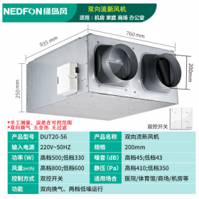 四川綿陽綠島風雙向流新風機商用新風系統(tǒng)工業(yè)大風量1000/1500/2000家用吊頂新風機管道雙向換氣機 (2片初效濾網(wǎng))800風量【DUT20-56】