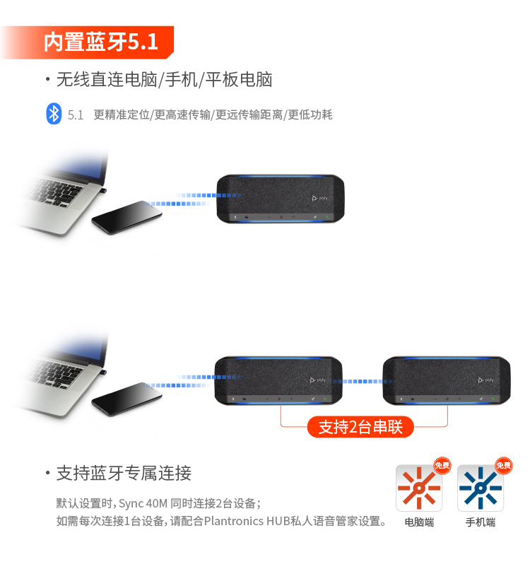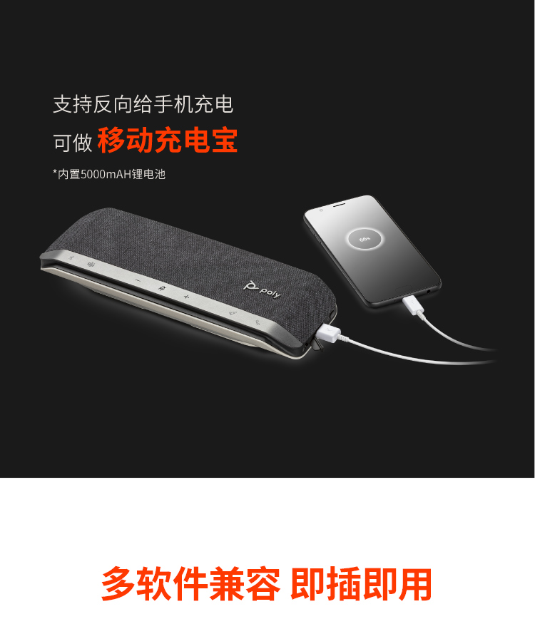 繽特力(Plantronics)Poly SYNC40M視頻會(huì)議全向麥克風(fēng) 藍(lán)牙會(huì)議揚(yáng)聲器(可串聯(lián)適合10-60㎡大中小會(huì)議室)