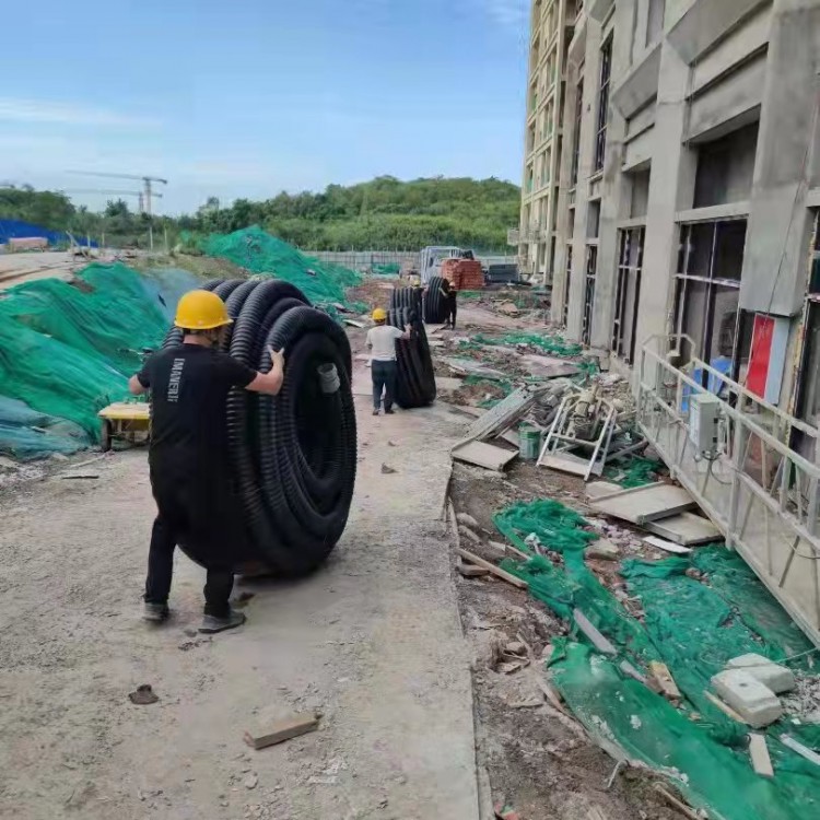 "碳素波紋管是采用HDPE(高密度聚乙烯)與碳素復(fù)合材料擠出成型和獨(dú)特的旋轉(zhuǎn)成型工藝技術(shù)生產(chǎn)的新型電力線(xiàn)纜保護(hù)管道。