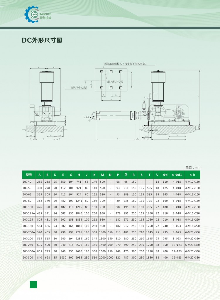 DC-40魯氏鼓風機的特點: