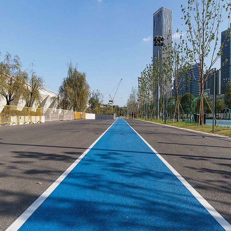 作為一種新的環(huán)保型、生態(tài)型的道路材料,該種透水路面面板鋪裝厚度根據(jù)巖性以及采用單粒徑巖石粒徑?jīng)Q定,一般厚度范圍在4~7cm?;鶎咏Y(jié)構(gòu)可以采用半剛性基層或者是級配碎石、級配礫石透水基層,具有良好的透水性,是由聚氨酯膠粘劑與單級配或間斷級配骨料按一定配合比拌合而成的新型路面材料。目前該種材料主要用于鋪裝景觀道路等輕交通路面。