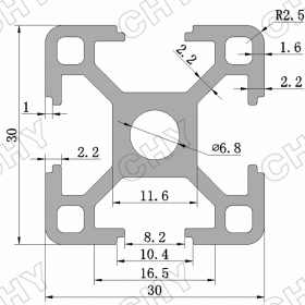 2、 參數(shù):歐標(biāo)3030鋁合金型材壁厚2mm。