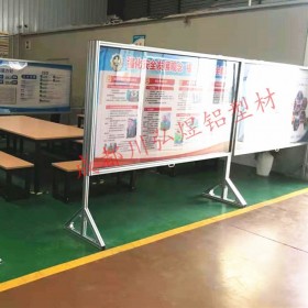 2、 產(chǎn)品特點(diǎn):鋁型材宣傳欄由40國標(biāo)鋁合金型材以及白板組裝而成,該宣傳欄下方也可以加腳輪可以移動(dòng)。
