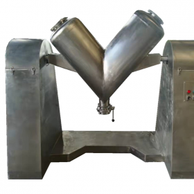 1、V型混合機(jī)的混合料筒為兩個(gè)不對(duì)稱的圓筒,材料為優(yōu)質(zhì)不銹鋼板卷圓密焊成型,筒體的兩端采用橢圓形封頭,在兩只封頭上均裝置進(jìn)料口,更利于物料混合完畢后對(duì)筒體的清洗。