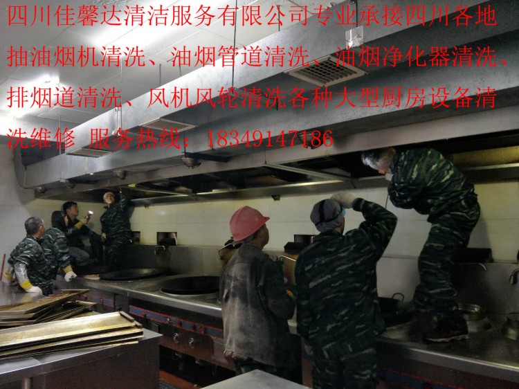 成都油煙機(jī)清洗成都煙道清洗成都廚房清洗四川佳馨達(dá)清潔服務(wù)有限公司。公司主要為酒店、賓館、食堂、工廠、公司、飯店、學(xué)校、單位提供油煙機(jī)、油煙管道、煤氣灶、燃?xì)庠睢⒖照{(diào)、熱水器等清洗、維修等一站式服務(wù)的專業(yè)清洗廚房油煙機(jī)系統(tǒng)設(shè)備公司。我們公司在同行業(yè)技術(shù)良好,給您提供方便、快速、的服務(wù)。公司一反以往清洗油煙機(jī)的老一套方法,拆了再洗,洗完再裝的方法??蛻糁恍枰粋€(gè)電話,我們就會(huì)有專業(yè)的服務(wù)人員上門(mén)為您清洗家用的油煙機(jī)。本公司擁有嚴(yán)格的管理制度、先進(jìn)的設(shè)備、精湛的技術(shù);清洗維修都具備多年清洗、維修、安裝經(jīng)驗(yàn),并不斷吸收新的技術(shù)和先進(jìn)的檢測(cè)設(shè)備來(lái)滿足廣大客戶的需求。公司具有一批國(guó)內(nèi)先進(jìn)的設(shè)備及高素質(zhì)、精業(yè)務(wù)的操作人員;有著與國(guó)際接軌的高要求管理水平,在行業(yè)競(jìng)爭(zhēng)中憑借公司良好的服務(wù)質(zhì)量及完善的跟蹤服務(wù)管理理念贏得廣大客戶的良好信譽(yù)。我們將以合理的價(jià)格、精湛的技術(shù)竭誠(chéng)為您服務(wù)!