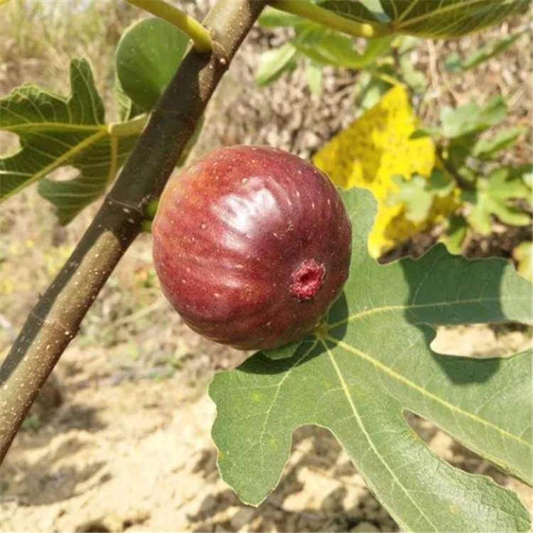 果實夏秋果兼用,以秋果為主,果皮鮮艷,為條狀褐紅或紫紅色,果肋較明顯,果柄短,果長卵圓或長圓錐形,秋果平均單果重60-90克,較大單果重110克。果肉微中空,淺紅或紅色,味甜,汁多,可溶性固形物含量16%-20%,品質(zhì)******。為鮮食大型紅色無花果優(yōu)良品種。