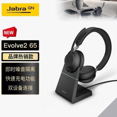 捷波朗(Jabra)雙耳頭戴式呼叫中心客服辦公耳機(jī) 話務(wù)電銷耳麥 電話會議耳麥Evolve2 65 UC 帶支架 黑色