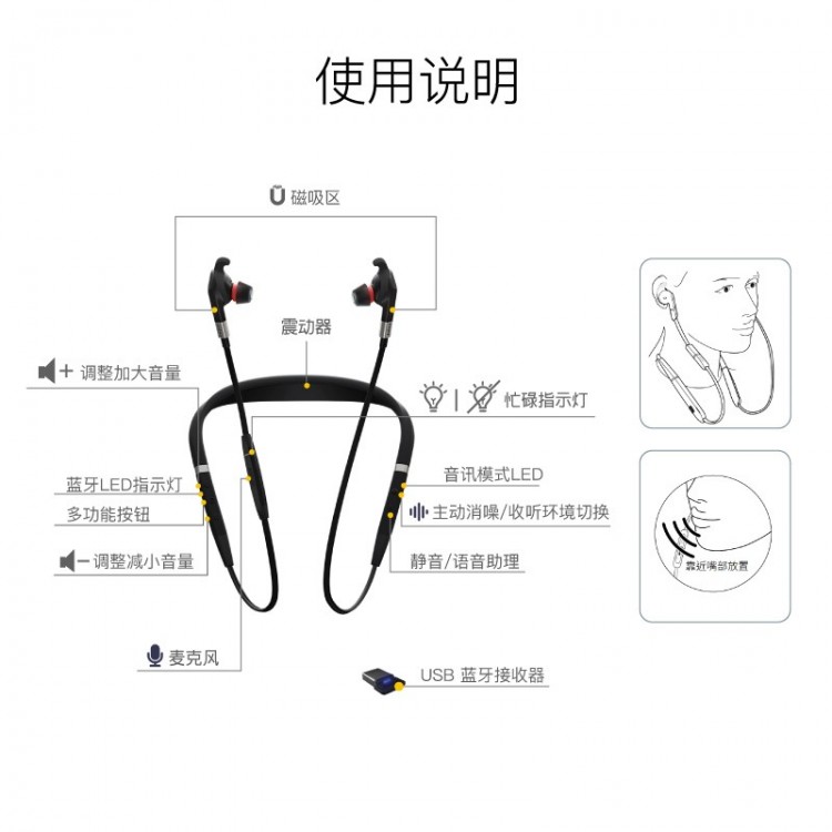 捷波朗(Jabra)線上網(wǎng)絡(luò)在線教育學(xué)習(xí)培訓(xùn)話務(wù)頸掛式耳機(jī)客服呼叫中心Evolve 75e MS版主動(dòng)降噪