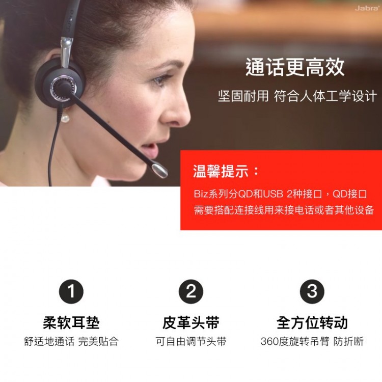 捷波朗(Jabra)專業(yè)款話務(wù)耳機(jī)頭戴式耳機(jī)客服耳機(jī)呼叫中心耳麥Biz 2400II QD被動降噪可連電話不含連接線