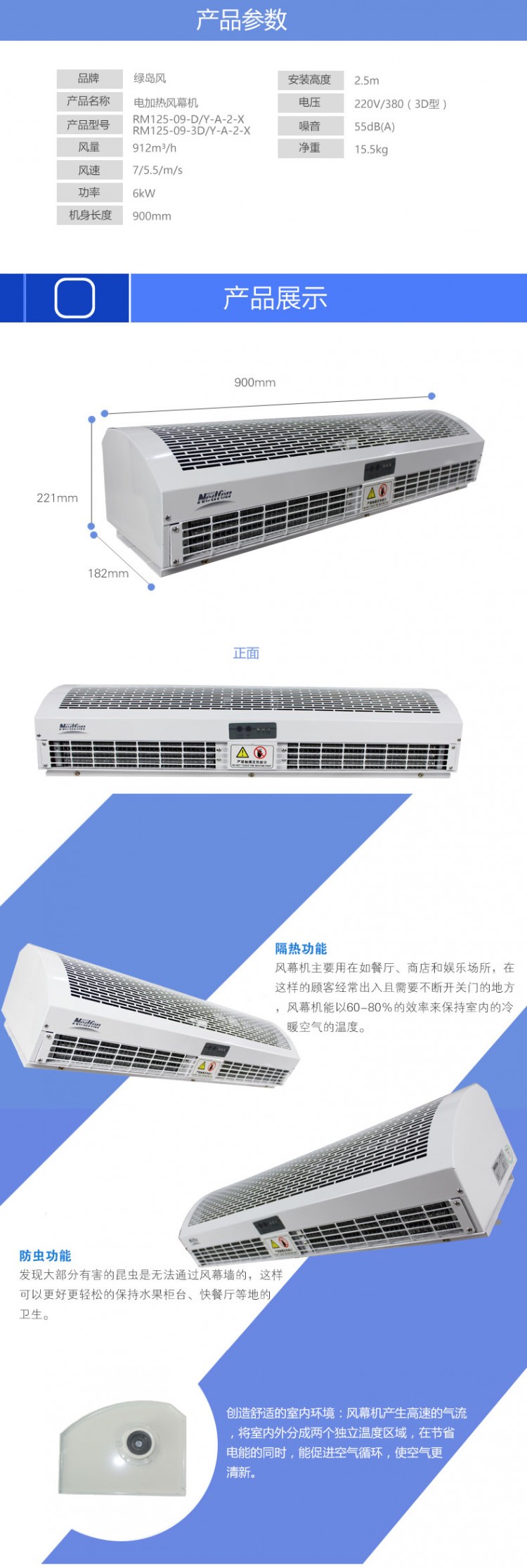 綠島風電加熱風幕機RM125-15-DY-B-2-X冷暖空氣幕遙控