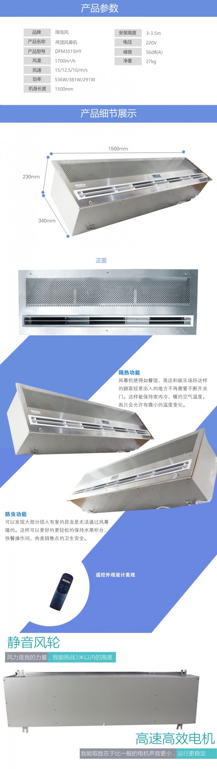 綠島風(fēng)天花機吊頂式風(fēng)幕機 遙控型離心大功率空氣幕 吸頂式風(fēng)簾機