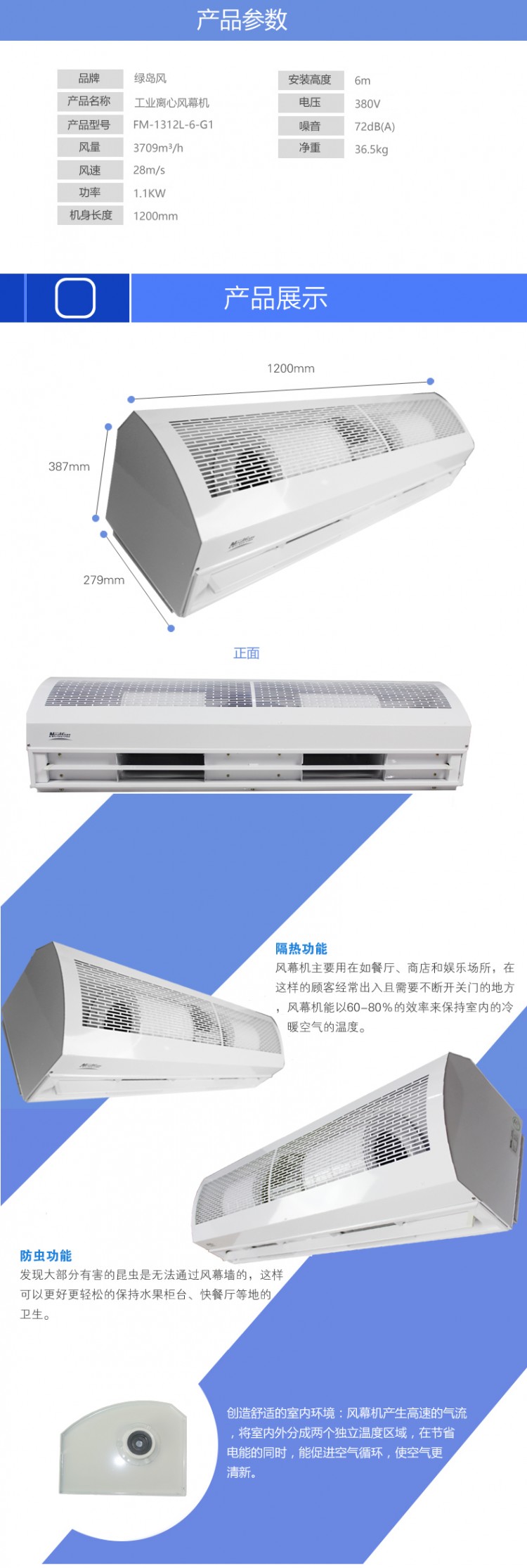 【綠島風】FM-1312L-6-G1工業(yè)用風幕機離心式 超大風量低噪音