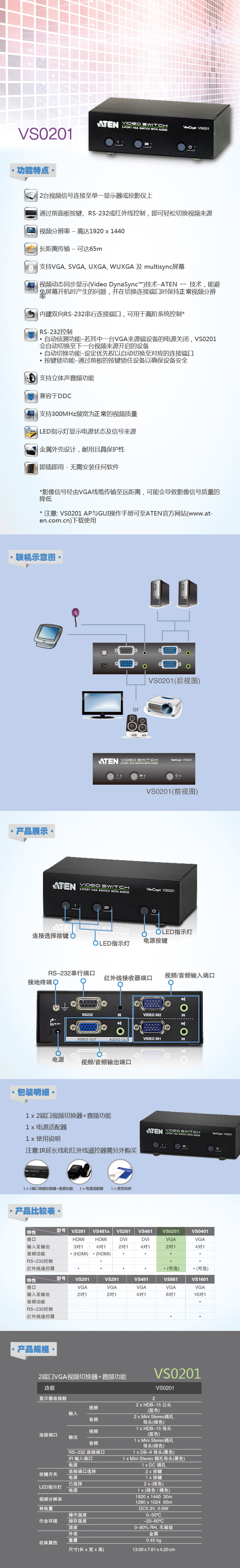 • 自動(dòng)偵測(cè)功能–若其中一臺(tái)VGA來(lái)源端設(shè)備的電源關(guān)閉,VS0201會(huì)自動(dòng)切換至下一臺(tái)視頻來(lái)源開(kāi)啟的設(shè)備