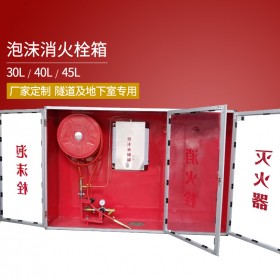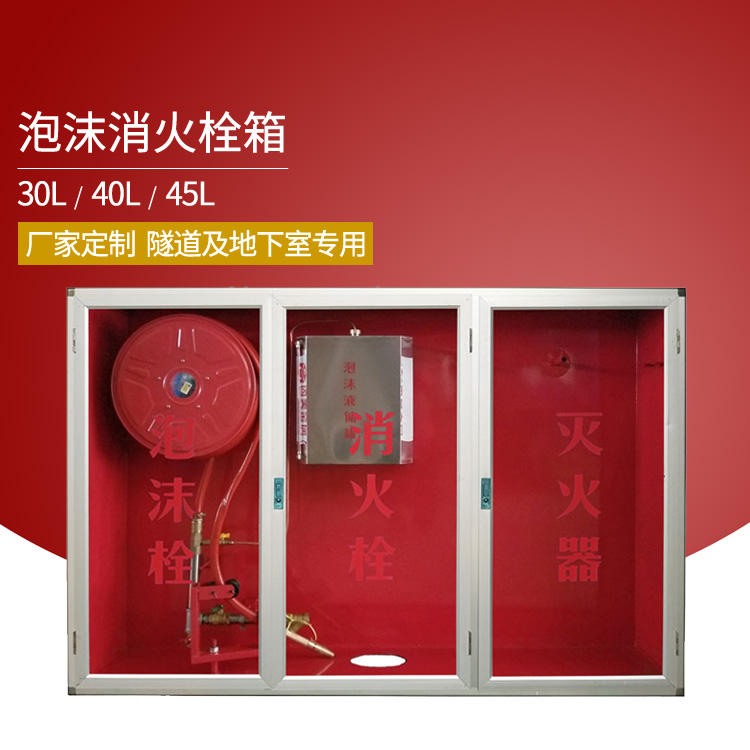 泡沫消火栓箱在滅火時當有不低于0.35MPa壓力的水以很高的速度流過泡沫消火栓箱的管道及管線比例混合器時,由于射流質(zhì)點的橫向移動的擴散作用,比例混合器的室內(nèi)形成真空(負壓),于是泡沫液儲罐內(nèi)的泡沫液在大氣的壓力作用下通過吸液管進入混合器,與壓力水混合,達到一定比例的混合液。當具有一定壓力的混合液流到噴槍時使泡沫混合液發(fā)泡。從而達到泡沫滅火的效果。