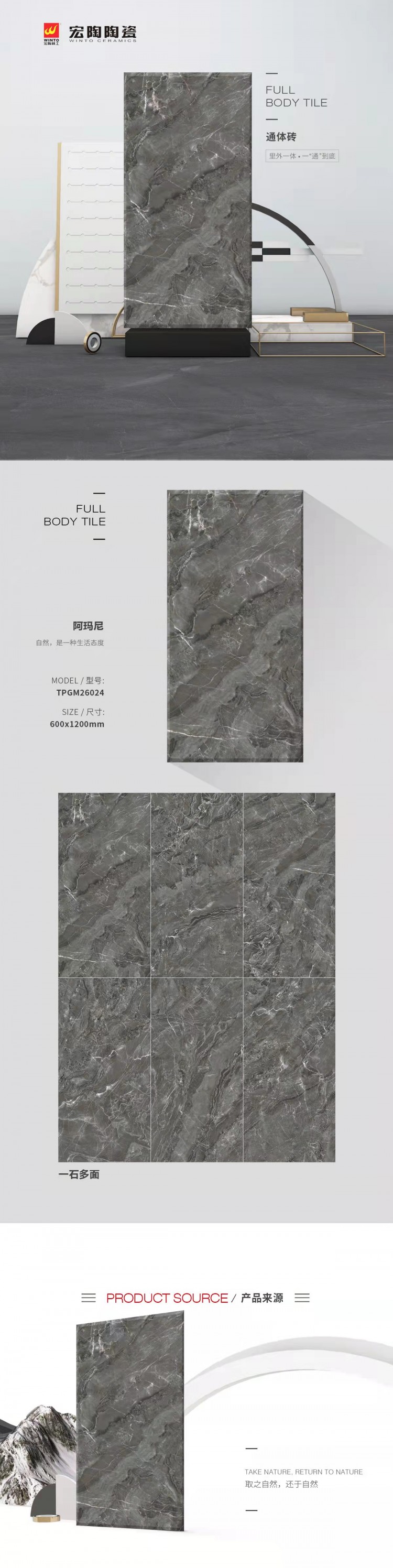 宏陶磁磚 阿瑪尼深灰通體磚 防水耐磨