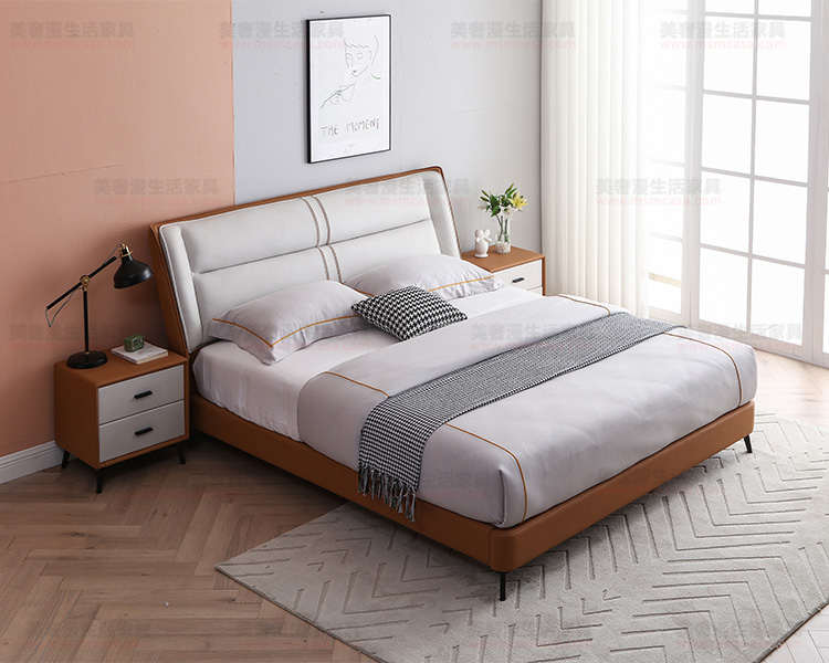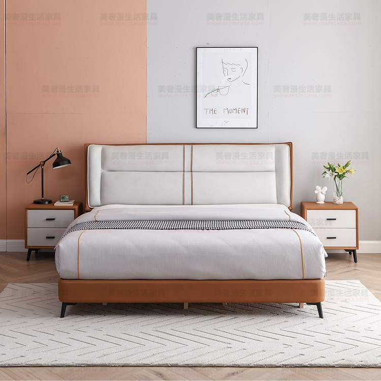 沙發(fā)軟床源頭工廠現(xiàn)代極簡輕奢科技布1.8米雙人布藝床美奢漫家具