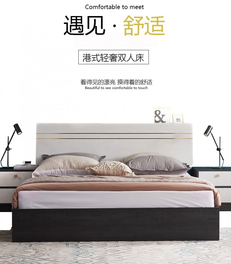 廠家直供現(xiàn)代港式輕奢板式公寓酒店樣板間臥室雙人硬靠床成都家具