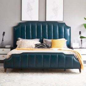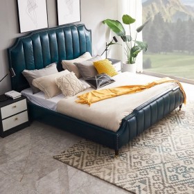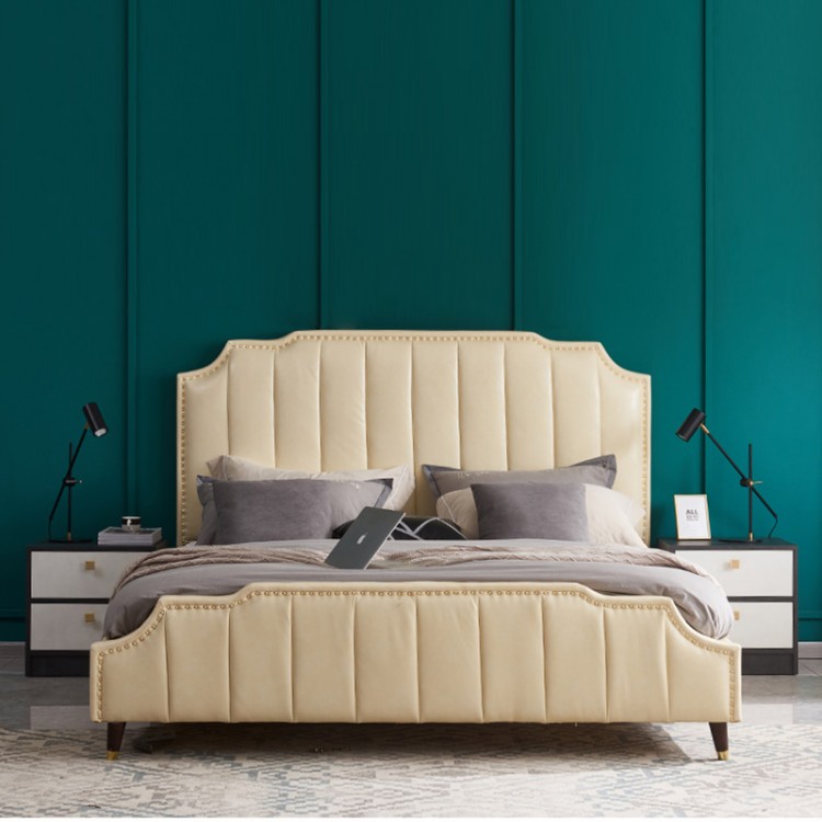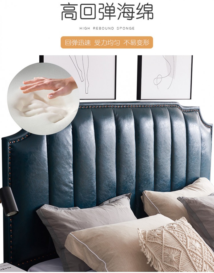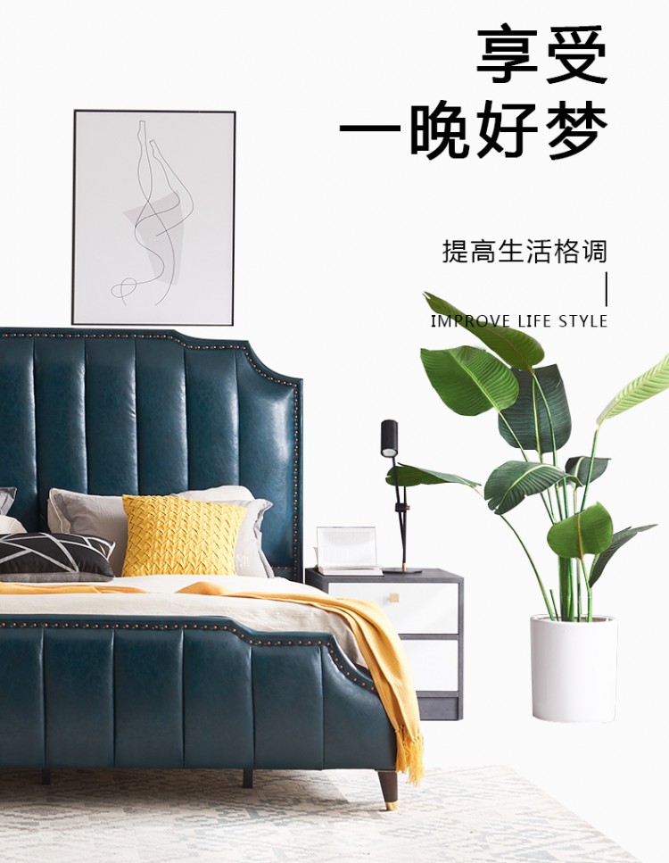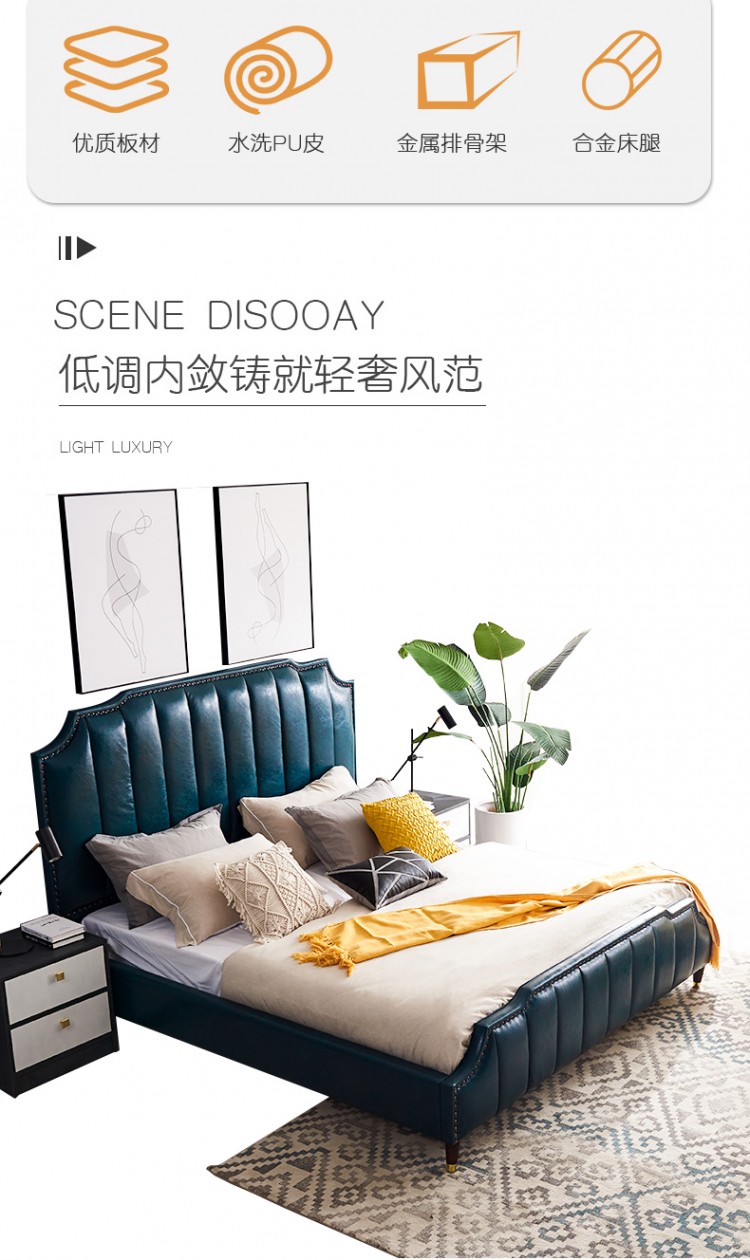 現(xiàn)代極簡港式輕奢臥室1.5米1.8米雙人皮床成都公寓酒店樣板間家具