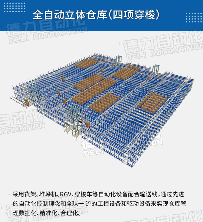 。利用立體倉庫設備可實現倉庫高層合理化、存取自動化、操作簡便化;自動化立體倉庫是當前技術水平較高的形式。自動化立體倉庫的主體由貨架、巷道式堆垛起重機、入(出)庫工作臺和自動運進(出)及操作控制系統(tǒng)組成。貨架是鋼結構或鋼筋混凝土結構的建筑物或結構體,貨架內是標準尺寸的貨位空間,巷道堆垛起重機穿行于貨架之間的巷道中,完成存、取貨的工作。