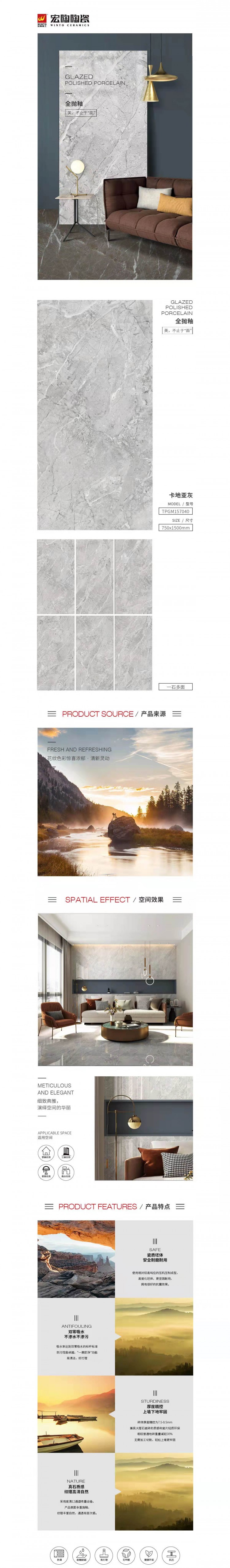 宏陶磁磚 卡地亞灰釉面瓷磚 防水耐磨