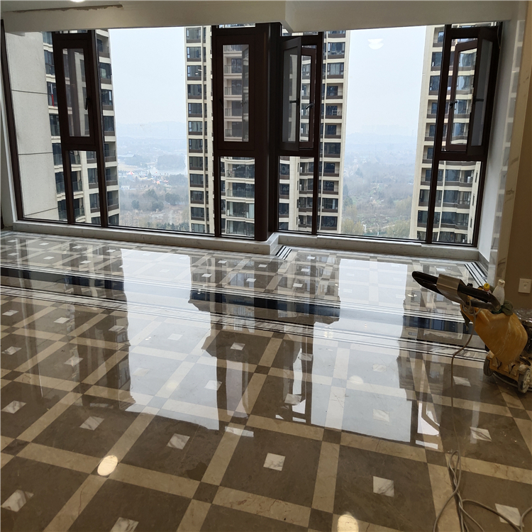 4、拋光:使用功率2HP以上,轉(zhuǎn)速175---210轉(zhuǎn)/分鐘,重量45-70公斤晶面機、獸毛含量70%的獸毛墊、3M墊、納米墊、配合大理石鏡面復顏霜NO2、2X鏡面鎖亮刀入乳Q5進行拋光研磨,拋光后大理石表面光澤度可達.少能在90—100度以上。