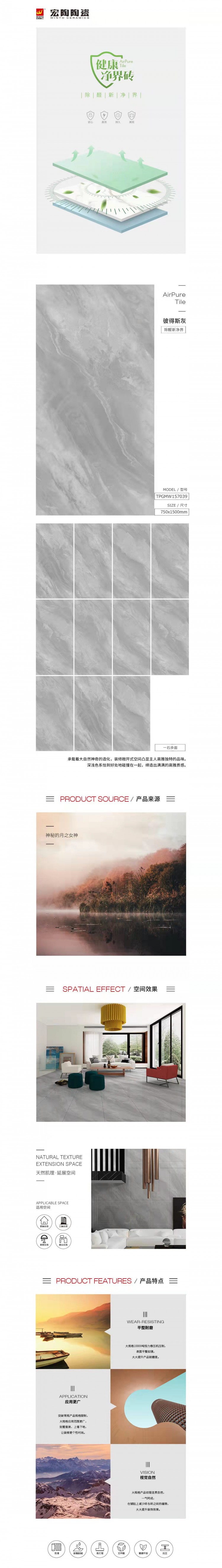 宏陶磁磚 彼得斯灰健康凈界瓷磚 防水耐磨