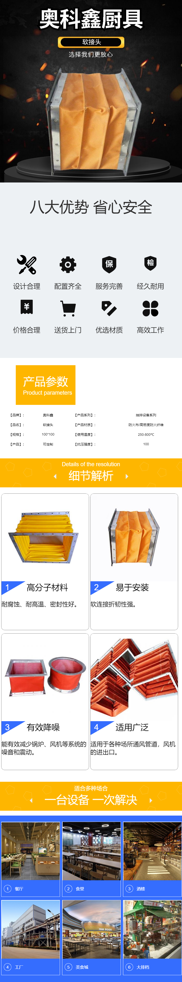 5、適用于:商用廚房,商場,超市,寫字樓,工業(yè)建筑的通風管道,風機的進出口