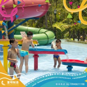 巨型茶壺噴淋,飽滿的明亮大色塊點綴水樂園中,是靚麗的水景。