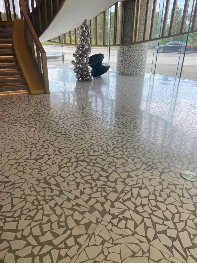水磨石(也稱磨石)是將碎石、玻璃、石英石等骨料拌入水泥粘接料制成混凝制品后經(jīng)表面研磨、拋光的制品。以水泥粘接料制成的水磨石叫無機(jī)磨石,用環(huán)氧粘接料制成的水磨石又叫環(huán)氧磨石或有機(jī)磨石,水磨石按施工制作工藝又分現(xiàn)場澆筑水磨石和預(yù)制板材水磨石地面。 傳統(tǒng)的水磨石以其造價低廉、可任意調(diào)色拼花、施工方便等獨(dú)特的優(yōu)勢