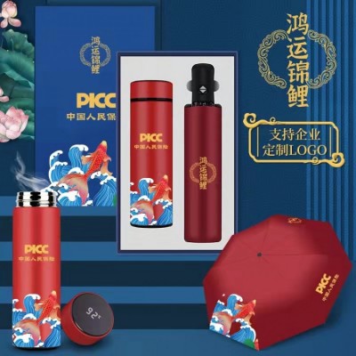 定制國潮保溫杯雨傘套裝 公司年會活動禮品保溫杯定制