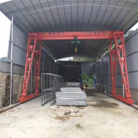 門式起重機(jī)是橋式起重機(jī)的一種變形,又叫龍門吊。主要用于室外的貨場(chǎng)、料場(chǎng)貨、散貨的裝卸作業(yè)。門式起重機(jī)具有場(chǎng)地利用率高、作業(yè)范圍大、適應(yīng)面廣、通用強(qiáng)等特點(diǎn),在港口貨場(chǎng)得到使用。它的金屬結(jié)構(gòu)像門形框架,承載主梁下安裝兩條支腳,可以直接在地面的軌道上行走,主梁兩端可以具有外伸懸臂梁。