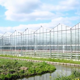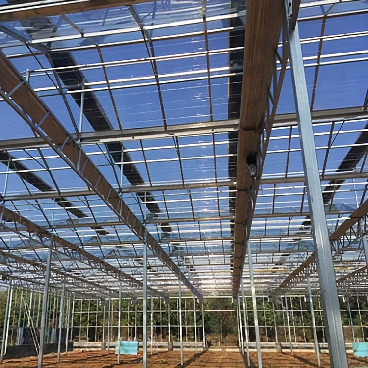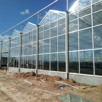 德農(nóng)川尖頂型智能玻璃溫室建造 定制鋼制骨架育苗玻璃大棚