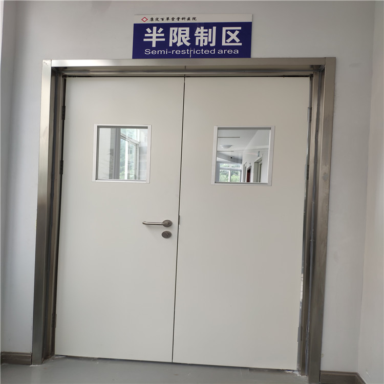 4.手術(shù)室門(mén)通常對(duì)氣密性和潔凈度有較高的要求,門(mén)扇內(nèi)部采用阻燃紙蜂窩填充,高強(qiáng)度鋁合金門(mén)框,并由自動(dòng)升降液壓設(shè)備大平臺(tái)壓制成型。