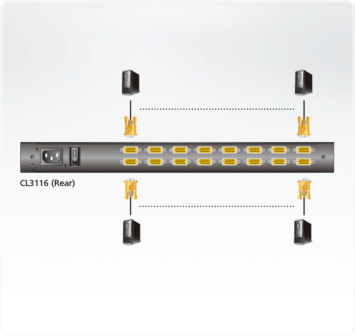 單一CL3116多可控制16臺電腦; 串接16個額外的KVM 多電腦切換器后, 單一CL3116 LCD KVM多電腦切換器可以控制多達(dá)256臺電腦。為了達(dá)到更高的操作效率,CL3116提供廣播模式,可從控制端將指令同時發(fā)送至所有服務(wù)器執(zhí)行。另外,自動掃描模式可持續(xù)監(jiān)控特定計(jì)算機(jī)組,為使用者打造可靠的工作環(huán)境。