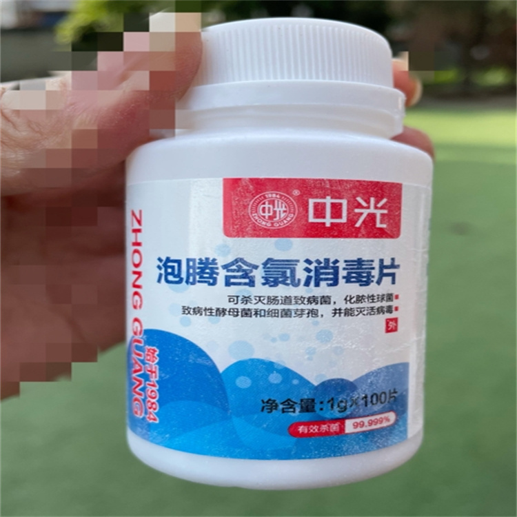 含氯泡騰片(三氯)幼兒園家用學(xué)校泳池寵物殺菌100片/瓶。