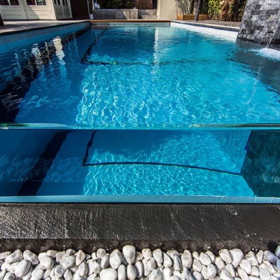所謂的透明泳池,其實就是采用全透明玻璃做成的泳池。這種全新方式的泳池吸引了很多人的目光。而這種全透明玻璃,并非我們現(xiàn)實生活中常見的玻璃或者鋼化玻璃,而是厚度達到10CM--20CM的高透光亞克力玻璃。