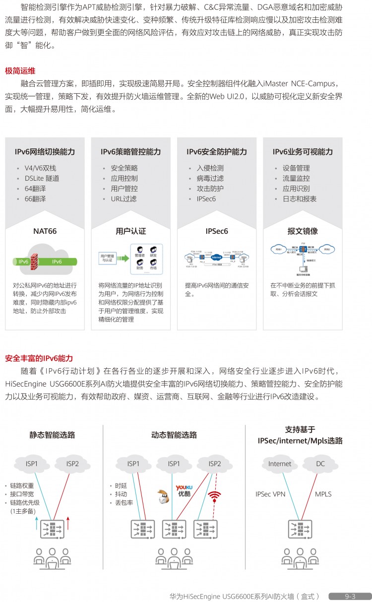 HiSecEngine USG6500E系列AI防火墻內(nèi)置NGE、CDE威脅防御引擎。NGE作為NGFW檢測引擎,提供IPS、反病毒和URL過濾等內(nèi)容安全相關(guān)的功能,有效保證內(nèi)網(wǎng)服務(wù)器和用戶免受威脅的侵害。