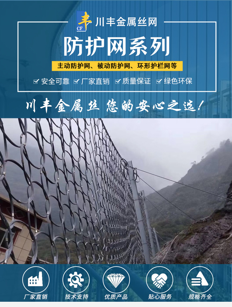 構(gòu)造: 由鋼絲繩網(wǎng)或環(huán)形網(wǎng)、固定系統(tǒng)、減壓環(huán)和鋼柱四個(gè)主要部分構(gòu)成