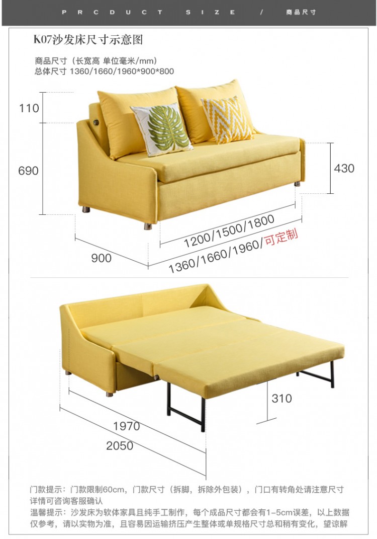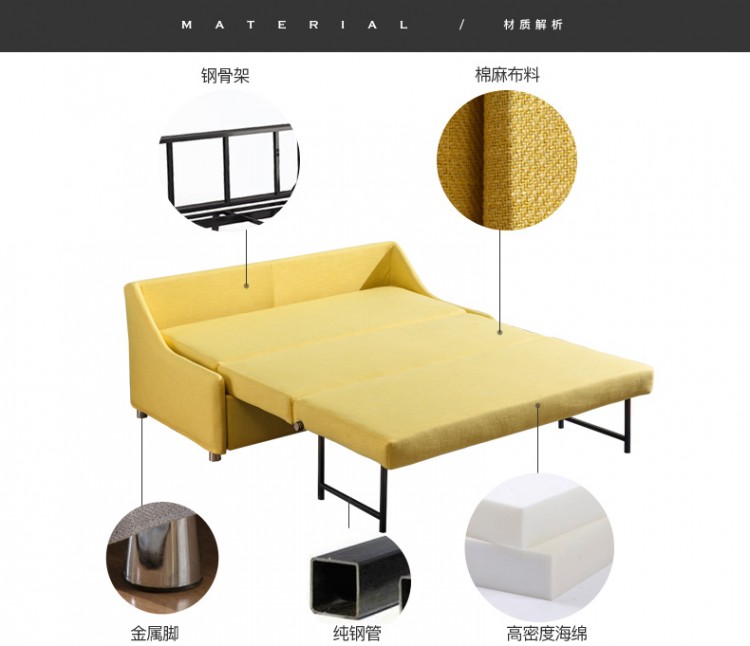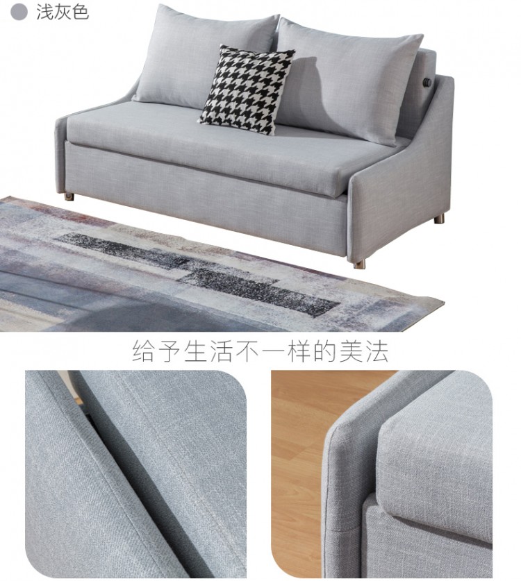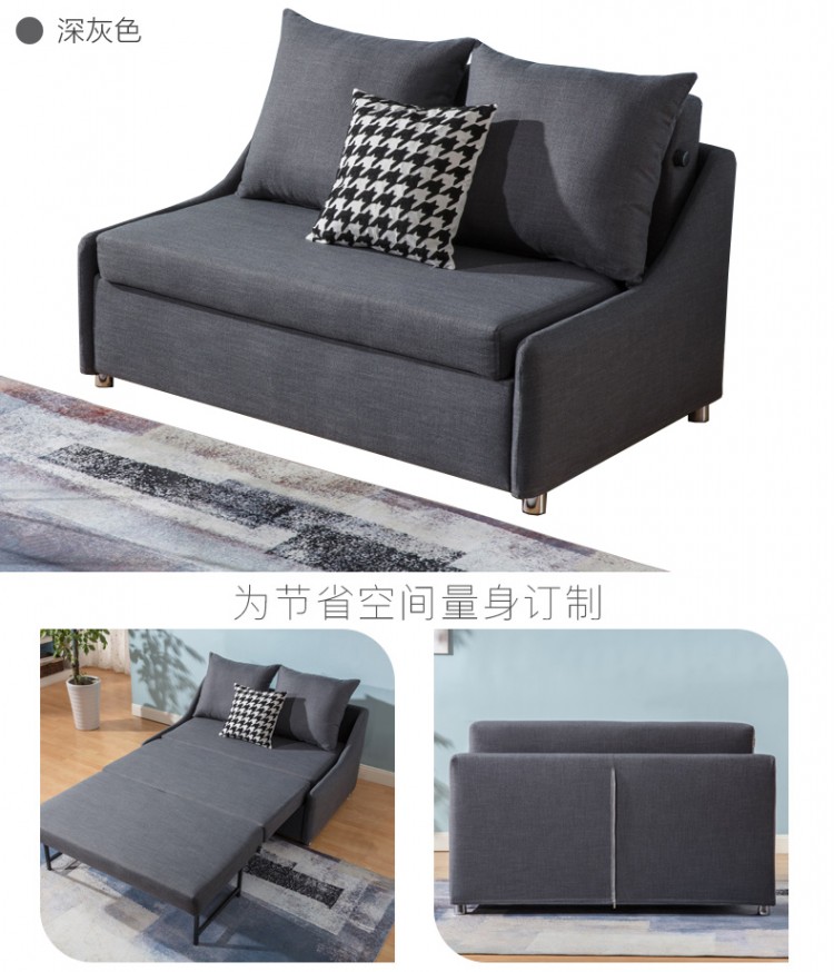 日式北歐現(xiàn)代布藝雙人三人沙發(fā)床三截可拉伸多功能折疊沙發(fā)公寓書(shū)房出租房家具