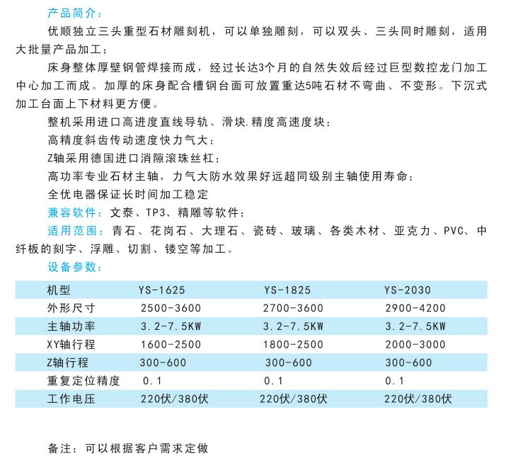 優(yōu)順三頭重型石材雕刻機 操作性強 可定制 廠家直銷